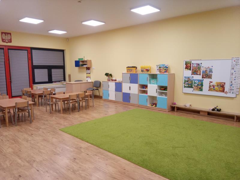Mieści się w nowym, bezpiecznym i funkcjonalnym parterowym budynku wybudowanym dla potrzeb placówki przedszkolnej. Jest otoczone dużym ogrodem z nowoczesnym placem zabaw. Posiada sześć dobrze wyposażonych, kolorowych sal zajęć i zabaw. Wystrój sal stwarza atmosferę ciepła i przytulności. Przy każdej sali jest łazienka, w której mieszczą się toalety, umywalki i półeczki na kubeczki z akcesoriami do mycia zębów. Z każdej sali jest również bezpośrednie wyjście do ogrodu. Przedszkole posiada także pokój terapii, gdzie prowadzone są indywidualne (lub w małych grupkach) zajęcia z zakresu pomocy psychologiczno - pedagogicznej i terapii logopedycznej. Korytarz przedszkola wyposażony jest w ciekawe zręcznościowe zestawy do zabawy umocowane na ścianach.